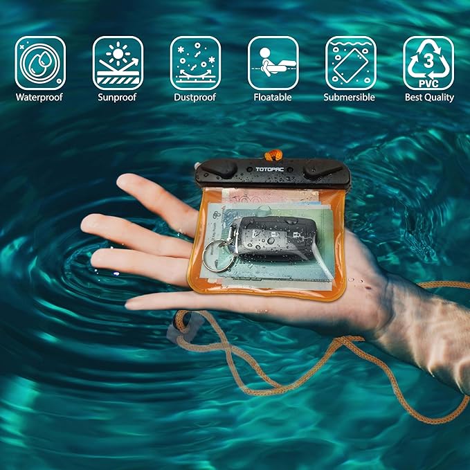 - Floating Design: Keeps your items (Car Key, FOB, Credit Card, AirTag, License etc) afloat in water when properly sealed with air inside, preventing accidental loss.
