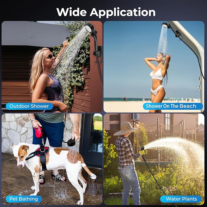 - 【Great Gift for Outdoor Enthusiasts】Outdoor Shower kit includes 1x Shower Pump, 1x Output Hose, 1x Shower Head, 1x Shower Balls, 1x Storage Bag, 1x 20L Folding Bucket, 3x Suction Cups, 1x Charging Cable, 1x Instruction Manual. Perfect for showering, camping, barbecuing, hiking, beach, traveling, bathing, pet bath, car wash, plant watering and more indoor and outdoor use. It provides convenience for all outdoor needs and makes a great gift for outdoor enthusiasts