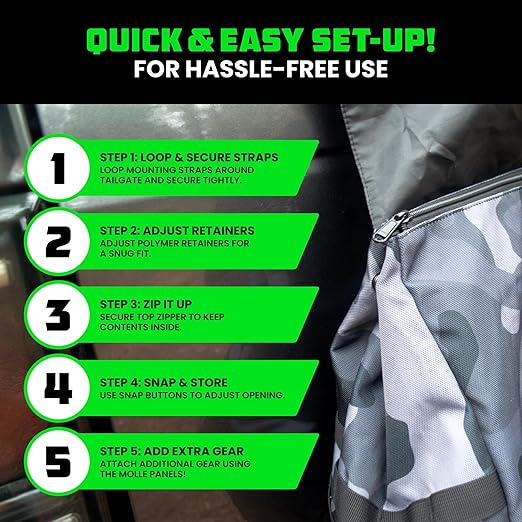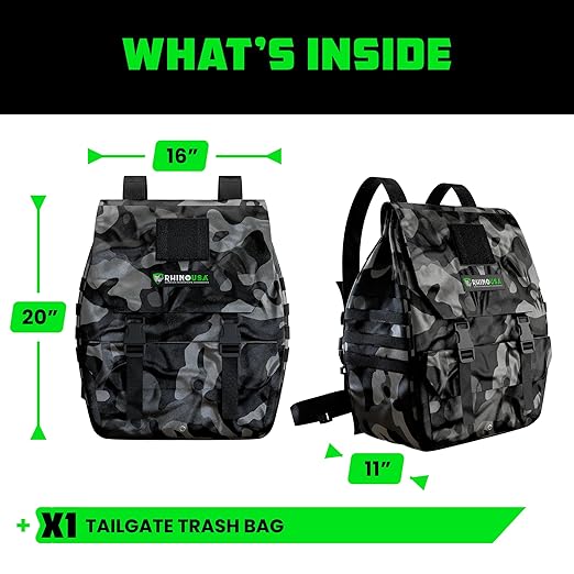 Rhino USA Tail Gate Trash Bag – Molle Compatible Overlanding Gear, Camping Essentials & Ultimate Accessory for Jeep Gladiator, Trucks & More - Camo