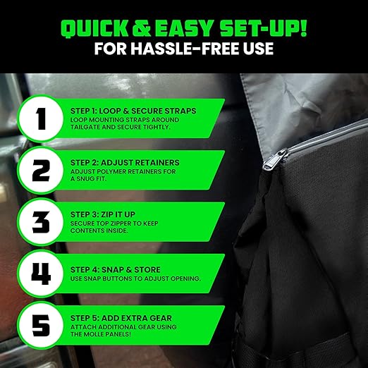 Rhino USA Tail Gate Trash Bag – Molle Compatible Overlanding Gear, Camping Essentials & Ultimate Accessory for Jeep Gladiator, Trucks & More - Black