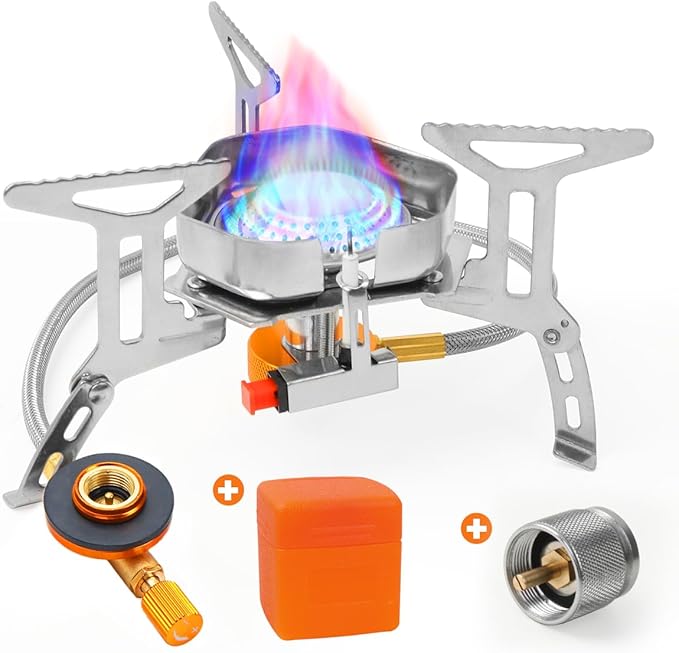 - Dual-Fuel Compatibility & Safe Adapters: Works with EN417 butane-propane canisters and 1LB propane tanks (adapter included); Brass connection valve with silicone seals prevents gas leakage during transport and use