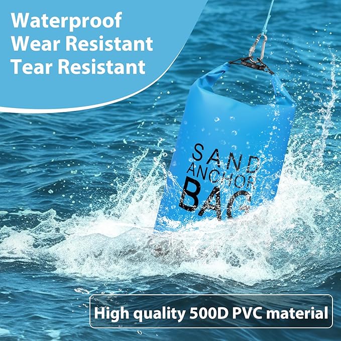 - Heavy-Duty & Reliable Material: This sandbag anchor is crafted from high-quality 500D PVC fabric, which not only resists fading and seawater erosion but also stands up to tearing. Additionally, it boasts excellent waterproof properties. Equipped with a high-density anchor rope, this product is designed for durability. You can trust that kayak anchors will maintain their strength and reliability even in challenging environments