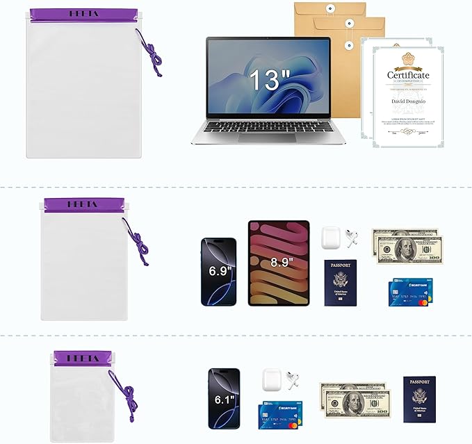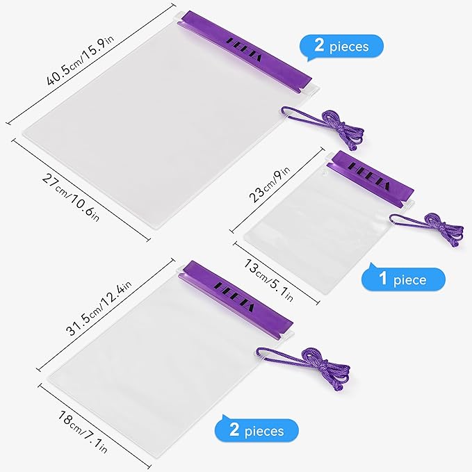 • Different Sizes: The waterproof bags with lanyard contain three sizes: Large: 15.9" x 10.6"; Medium: 12.4" x 7.1"; Small: 9" x 5.1". You can choose different sizes according to your needs