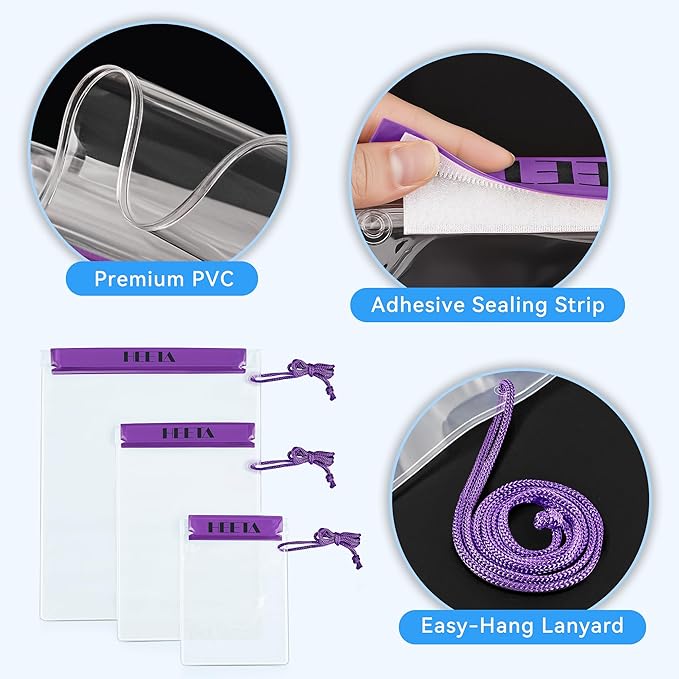 HEETA 5-Pack Clear Waterproof Dry Bag, Water Tight Cases Pouch Dry Bags for Camera Mobile Phone Maps, Kayaking Boating Document HolderB0DYJWKGDH