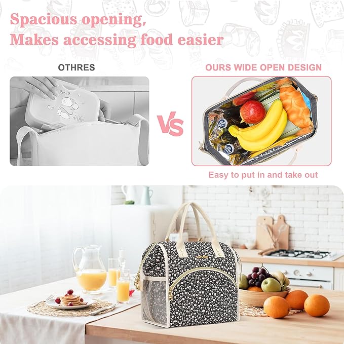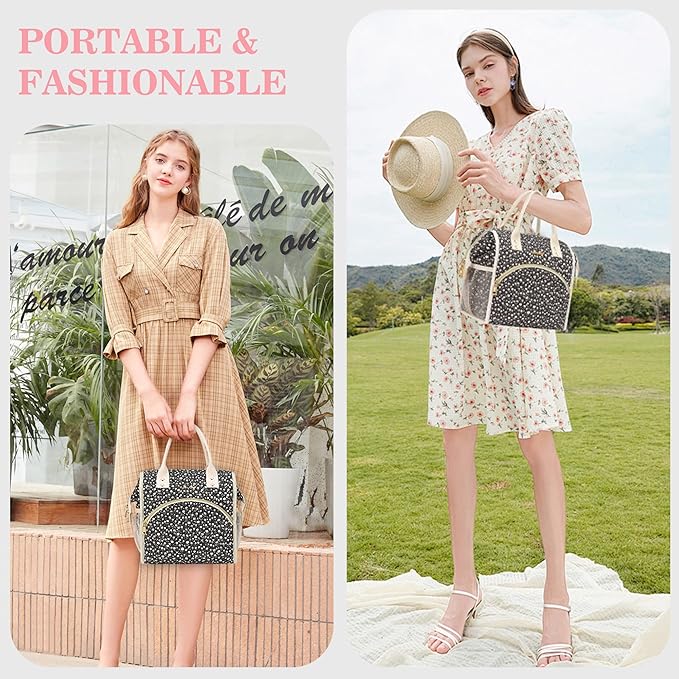 - 【Fashionable Lunch Bag】The uniquely designed lunch bag women, exquisite appearance and wrinkle-resistant shape make you say goodbye to the simple bag on the way to work and replace it with this practical and fashionable insulated lunch bag suitable for your elegant style. It can make your charm get the greatest praise! The fashionable style design makes the lunch bag is ideal to be used for men and women.