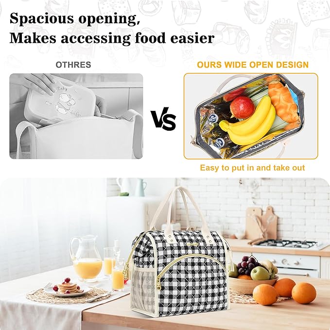 - [Wide-Open Design for Easy Access] The dual-zipper top fully opens, allowing you to place and remove containers horizontally without hassle. The wide opening prevents spills, making it easier to organize and clean your meals.