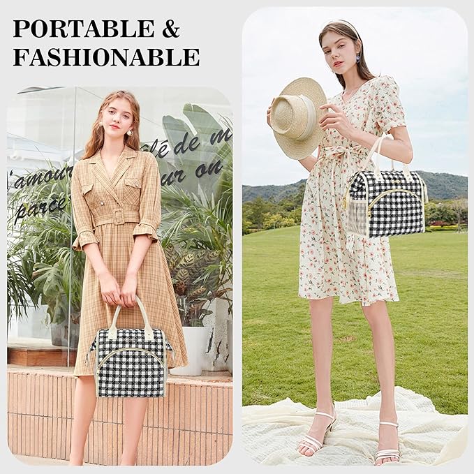 - 【Fashionable Lunch Bag】The uniquely designed lunch bag women, exquisite appearance and wrinkle-resistant shape make you say goodbye to the simple bag on the way to work and replace it with this practical and fashionable insulated lunch bag suitable for your elegant style. It can make your charm get the greatest praise! The fashionable style design makes the lunch bag is ideal to be used for men and women.