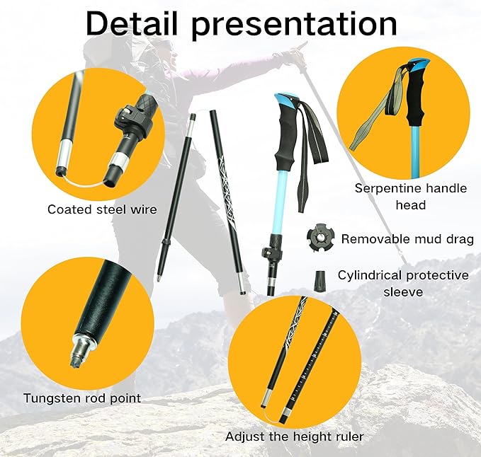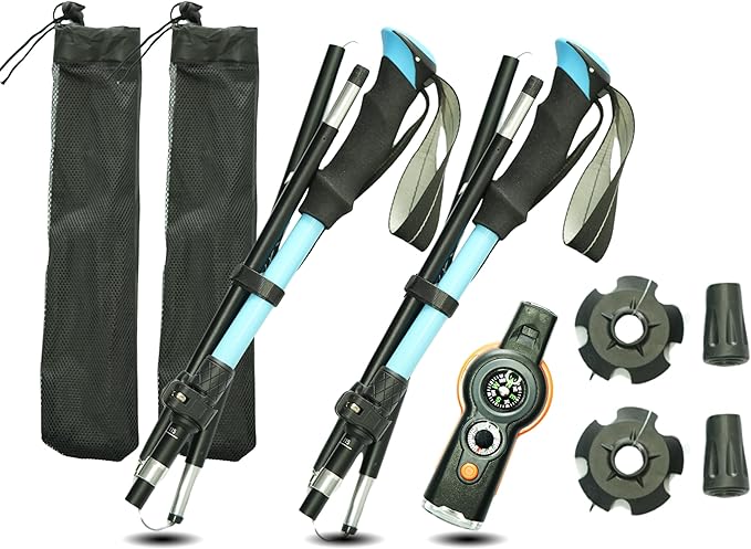 - Lightweight & Durable Materials: Crafted from aircraft-grade aluminum alloy, our collapsible trekking poles weigh less than 0.7 pounds, making them easy to carry on long hikes while providing robust support for outdoor activities like hiking, camping, and climbing