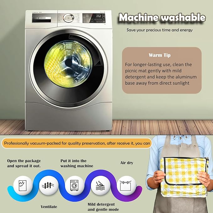 - [Gentle Reminder for Our Customers] To ensure your product arrives in perfect condition, we’ve vacuum-sealed it for protection. Upon arrival, you may notice: A slightly compressed appearance and A mild factory smell (completely harmless), For the best experience, we recommend: Unfold and lay flat in a well-ventilated area for 24 hours, If the mat hasn’t fully regained its softness after airing out, simply: Machine wash on gentle cycle, Use mild detergent, Air dry completely, Your picnic mat will soon return to its wonderfully soft and fluffy state!