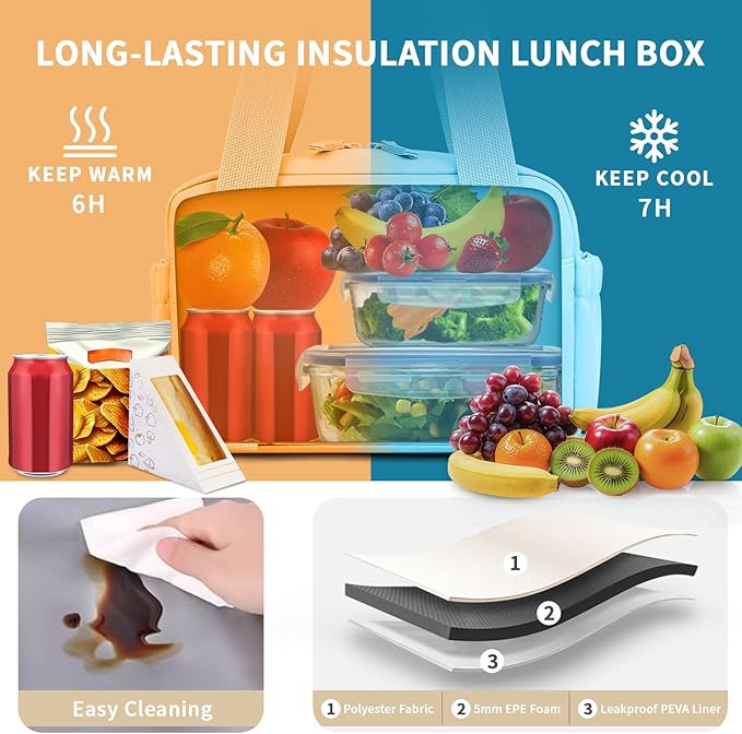 - High quality: ZOMFELT lunch bags are made of puncture-resistant 600D polyester fiber and PEVA. The padded interior keeps your lunch warm for up to 6+ hours. Wipeable fabric keeps you fresh on your daily adventures