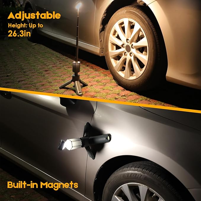 - 【Telescopic Design & Magnetic】 This versatile camping light features a collapsible design and comes with a storage pouch for easy portability and use. You can adjust the light's height to fit your needs.Plus,the magnetic base securely attaches to any metal surface for convenience during outdoor adventures.