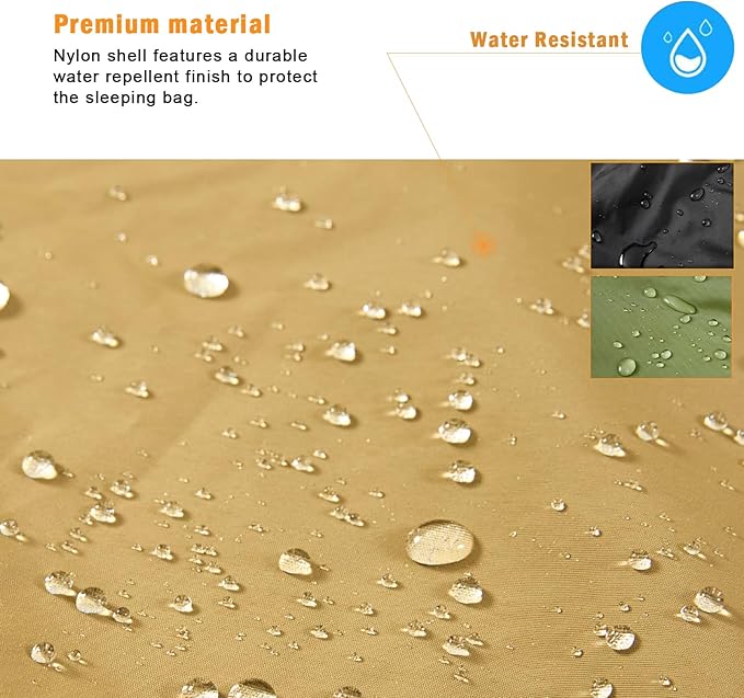 - Intermediate sleeping bag Filling:Polarguard HV High-grade military filling material, high fluffy,compression resistant. Even if wet, it has a certain thermal insulation performance Temperature scale:comfortable temperature recommended-15-0 degrees; with patrol sleeping bag+camping bag together Use,can reach -40 degrees,comfortable temperature recommended -30 to -20. Size: from 87x35.4inch (width) to 87x22.8inch (narrow)