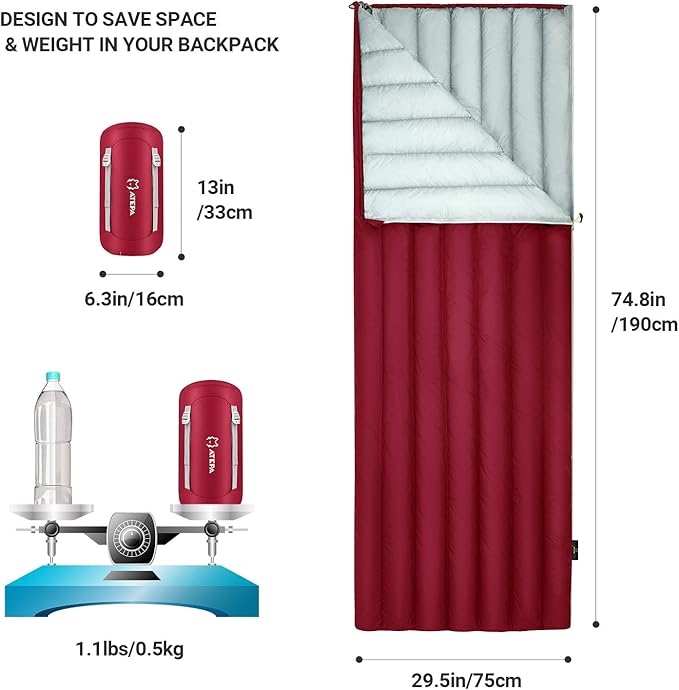 ATEPA Down Sleeping Bag for Adults, 650FP Ultralight 3 Season Compact Packable Sleeping Bag with Compression Sack for Camping Backpacking Hiking
