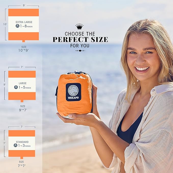 WEKAPO Beach Blanket Sandproof Waterproof, Extra Large Beach Mat, Oversized & Compact Sand Free Mat Quick Drying, Lightweight & Durable with 6 Stakes & 4 Corner Pockets