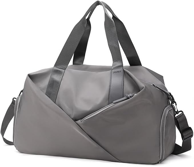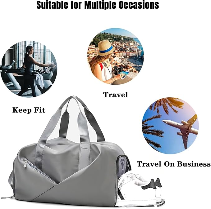 Gym Bag for Men & Women with Shoe Wet Compartment and Wet Pocket, Waterproof Sports Bags for Men, Weekender Overnight Bag, Sport Gym Tote Bags Swimming Yoga (Grey)