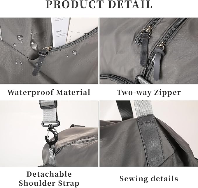 - Lightweight Water Proof Duffle Bag : Our duffle bags are made with high-quality waterproof fabrics. They are soft, washable, waterproof, wrinkle-free, and wear-resistant. Waterproof exterior keeps your clothes and items dry; it can be used both indoor and outdoor. Duffelbag with handles, and removable shoulder strap with adjustable buckle.