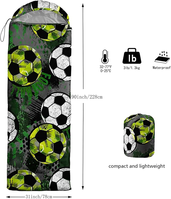 - 🌟 Unparalleled Comfort - Indulge in the epitome of comfort with our Soccer sleeping bag. Meticulously crafted from premium microfiber fabric, it envelopes you in a cocoon of luxurious softness, ensuring an unparalleled sleep experience. The advanced 100% polyester surface material guarantees exceptional durability and long-lasting performance.