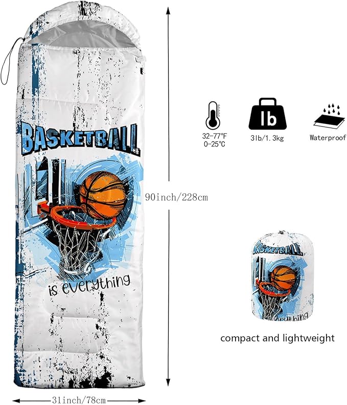 - SUITABLE:The sleeping bag can be used for 3 Seasons.SIZE:90.5"L x 31.5"W Suggenal extreme temperature: 41 ℉ -77 ℉.Applicable in a variety of scenarios,such as Travel camping pajamas party,It's very suitable for you to travel with your children.Half-circle hood with adjustable drawstring,which can keep you warm and prevent your humidity
