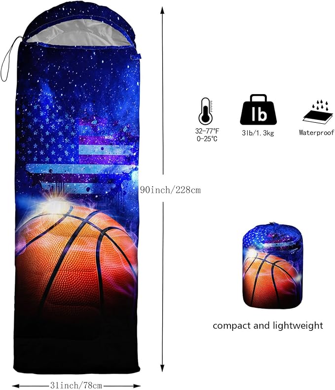 - SUITABLE:The sleeping bag can be used for 3 Seasons.SIZE:90.5"L x 31.5"W Suggenal extreme temperature: 41 ℉ -77 ℉.Applicable in a variety of scenarios,such as Travel camping pajamas party,It's very suitable for you to travel with your children.Half-circle hood with adjustable drawstring,which can keep you warm and prevent your humidity