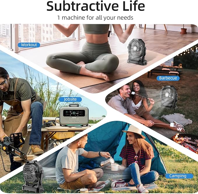 - [Compact for Outdoor Adventures] The portable fan camping gear is designed with a compact size that easily fits into your backpack for convenient carrying and storage. Whether you're car camping, fishing, picnicking, grilling, or relaxing on the beach, our multi-functional table fan is a camping essential to keep you cool and comfortable in nature.