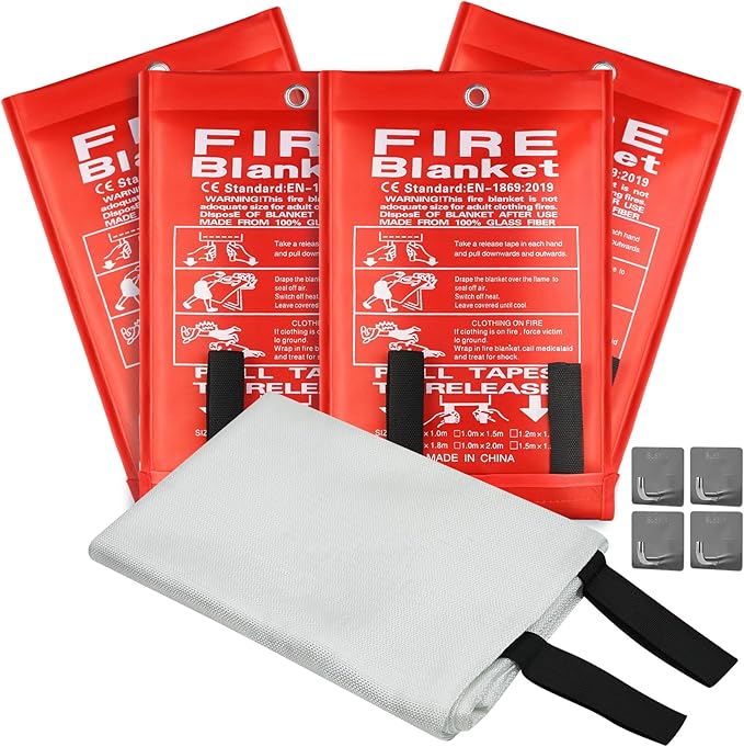Emergency Fire Blanket, 40"x40" Fiberglass Suppression Fire Retardant Blankets for Home, Kitchen, Camping, Grill, Car, Office, Warehouse with Hooks(4 Pack)