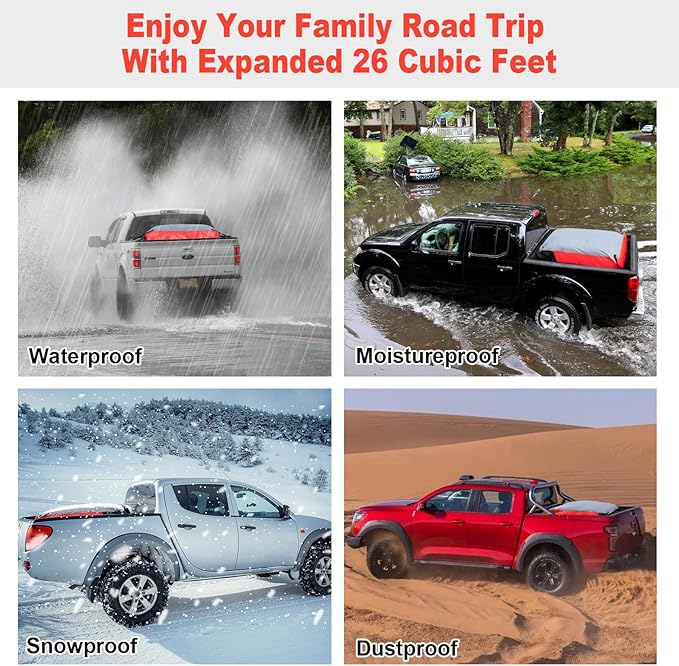 - [Spacious Capacity] - Cargo bag can hold 26 cubic feet of space for 6-8 26" suitcases, 3 single tents, 3 sleeping bags, etc. The overall size is 50''x40''x22'', plenty of storage space to free up space inside the vehicle and make the journey more comfortable for multiple people. We are equipped with free storage bags and inner boxes for easy storage and use
