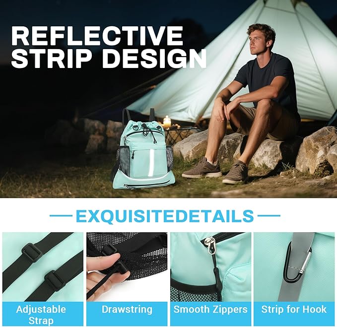 - Dry/Wet Separation Zones: The drawstring backpack is design with spacious main pocket for keeping clean object/clothes, interior zipped pocket for phone; Front wet pocket for storing sweaty gym clothes/toiletries. Front Pocket for small objects. Ensuring your belongings stay clean and dry