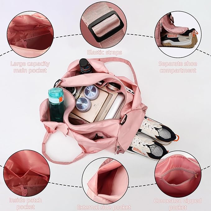 Gym Bag, Yoga Gym Bag for Women and Men, Carrying Workout Gear and Accessories, Shoe Compartment and Wet Dry Storage Pockets, Travel Duffle Bag Carry On Weekender Bag