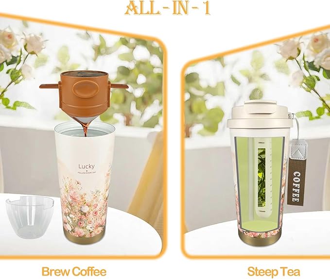 - 【Heat/Cold Insulation】 The coffee mug has good heat insulation performance, keeping hot tea at 95℃ above 50℃ for 6 hours in a 25℃ environment, and it performs even better with cold tea and coffee.Therefore, this tea infuser mug is not only suitable for brewing tea but can also be used as a pour-over coffee mug, fully capable of meeting your needs for enjoying a cup of hot coffee or tea.