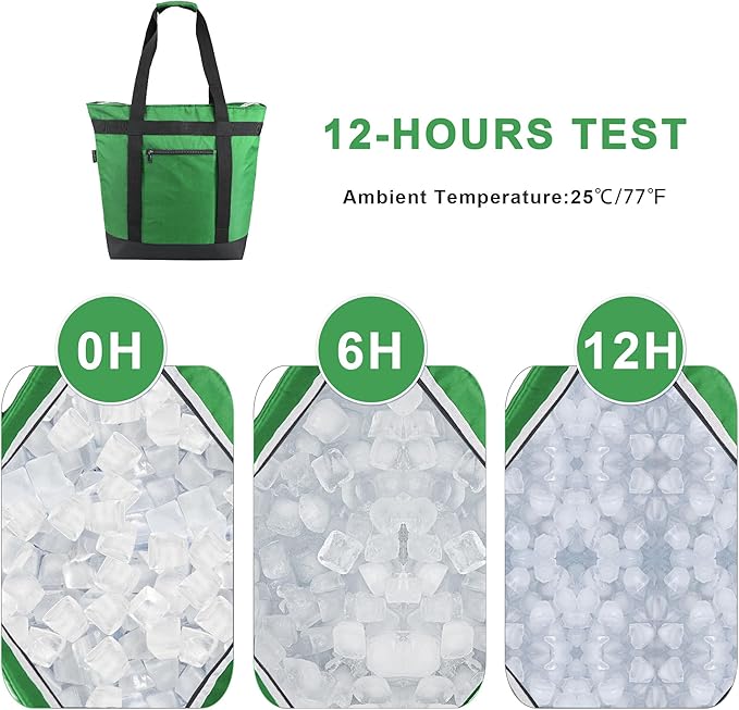 - Keeping Food Warm & Cold: Our Large insulated cooler bags consists of 4 layers, Oxford cloth, Aluminum film, EPE foam, food-grade PEVA liner. Our soft cold bag have thick and sturdy material that will keep your cold, frozen items cool and your warm supplies at heat for about 8 or more hours.(1)Keeps Ice Frozen for Hours:cold bag are tested to keep ice frozen for 8 or more hours when zipped closed! (2)Hot Food Stays Hot: The 4 layer travel cooler keeps your food hot as you drive across town.