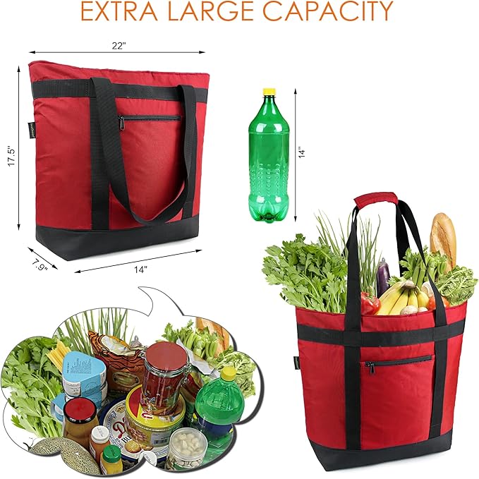 - Collapsible & Multi-Functional: The cold grocery bag insulated fold up flat and for easy storage. It can help you store cool or warm foods when you are shopping in the supermarket. It is perfect for travel cooler bag, beach cooler tote bag, insulated picnic bag,lunch bag, fish cooler bag, insulated reusable grocery bags, beach cooler, insulated shopping bags.