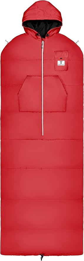Thermotuff Wearable Sleeping Bag with Dual Hoodie, Zippered Arm Holes, Pockets & Adjustable Drawstring - Ideal for Camping, Cold Weather Hiking, and Stadium Sak Blanket