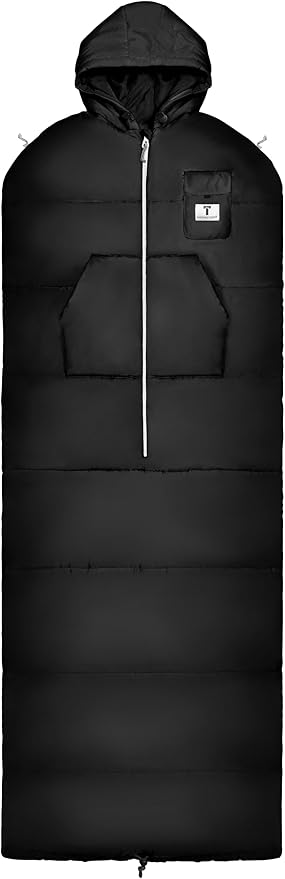 Thermotuff Wearable Sleeping Bag with Dual Hoodie, Zippered Arm Holes, Pockets & Adjustable Drawstring - Ideal for Camping, Cold Weather Hiking, and Stadium Sak Blanket