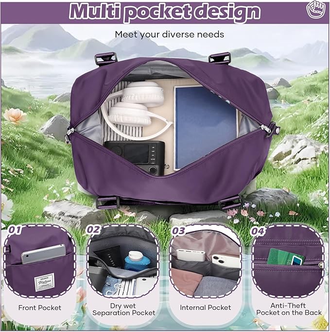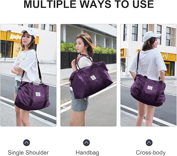 - 【 Extra points Weekend Bag 】 ①The sleeve on the back of the duffle has an additional adhesion belt to keep the bag stayed on the suitcase tightly. ②The duffel bag made of high quality tear and water resistant fabric,you don't worry about your items from getting a wet.③Double zipper, smooth and wear-resistant. ④Adjustable shoulder straps, freely adjust the tightness of the backpack.