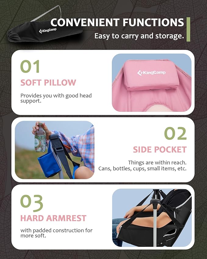 - 【Functional Design with Thoughtful Details】From the cup holder for easy drink access, to the padded hard armrests for added support, every detail is made for convenience. The padded pillow, adjustable seatback, and breathable mesh lining add extra touches of luxury to your foldable hammock chair experience.