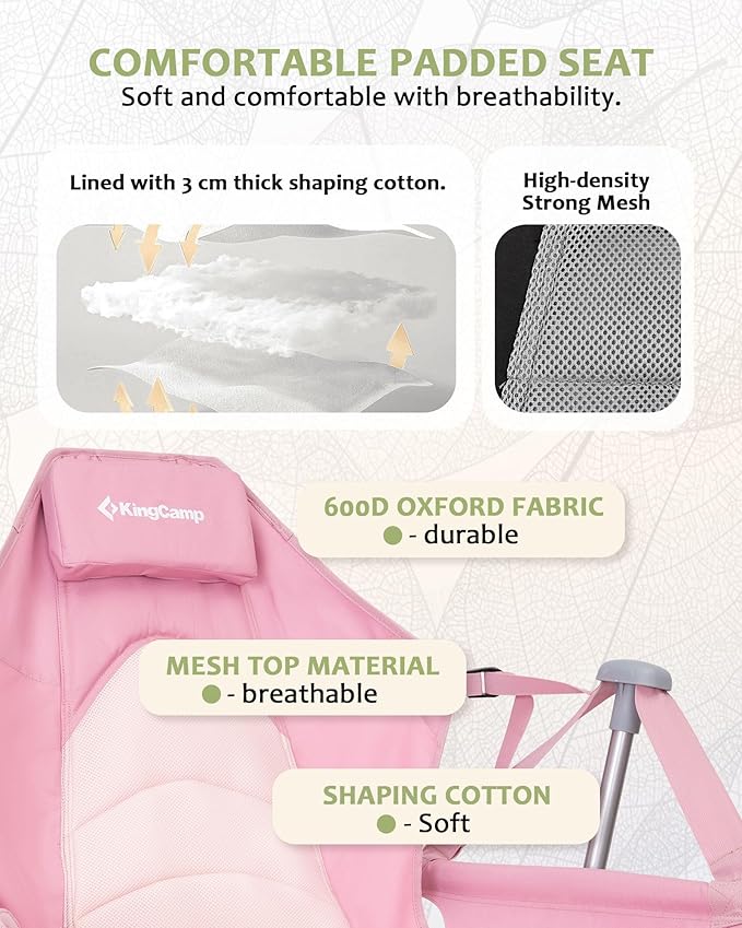 - 【Oversized for Maximum Comfort & Support】Built for relaxation without limits — with an extra-wide, heavy-duty design that supports up to 400lbs. The breathable mesh-padded seat and supportive headrest pillow provide ergonomic comfort, while the rugged 6063 aluminum alloy + Q195 steel frame offers unmatched durability and peace of mind.