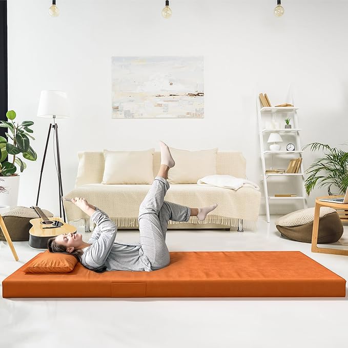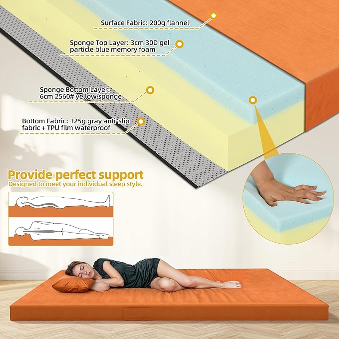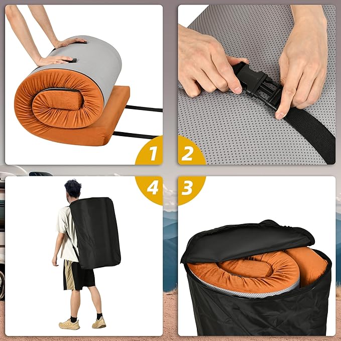 DWVO Memory Foam Camping Pad Futon Mattress Full, 3.5 INCH Thick Portable Floor Sleeping Mat with Travel Bag