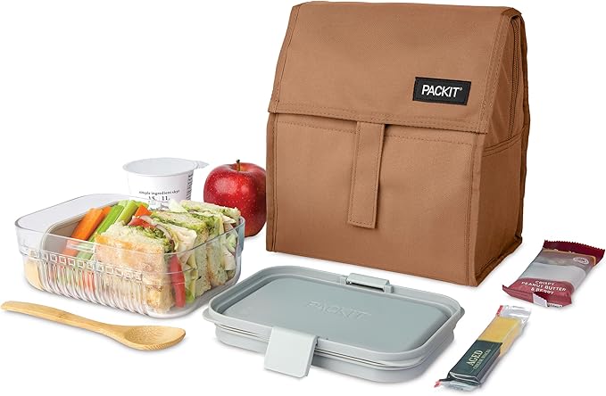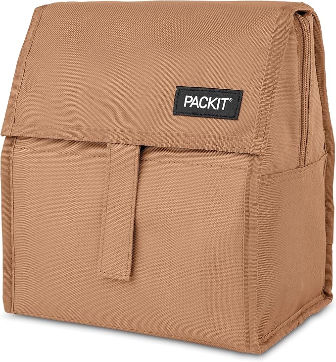 PackIt® Freezable Lunch Bag, Almond, Built with ECOFREEZE® Technology, Foldable, Reusable, Zip and Fold Closure with Buckle Handle, Designed for Work Lunches and Fresh Lunch On the Go