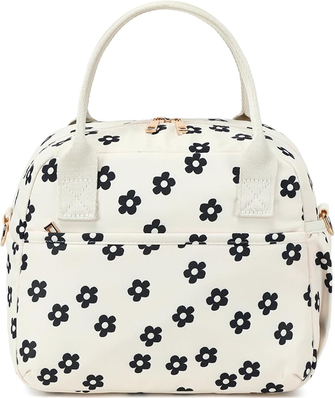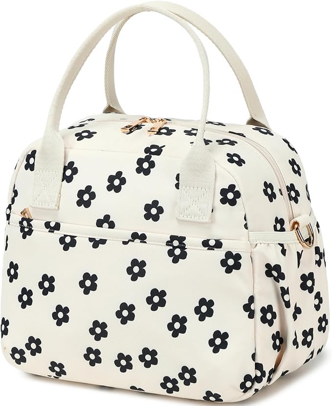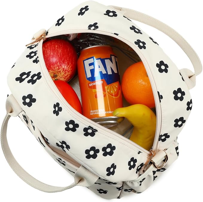 CAMTOP Lunch Box for Women Men Insulated Lunch Bag Lunch Tote Bag Leakproof Thermal Cooler Large Capacity for Travel Work School Picnic (Black Flower)