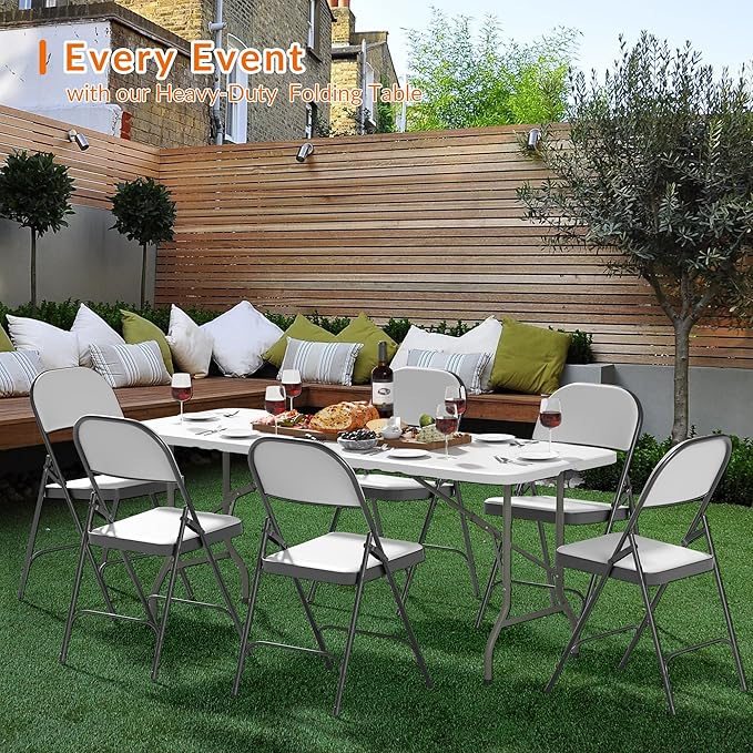 Folding Table, 6 Feet Heavy Duty Fold-in-Half Utility Table Indoor Outdoor for Camping, Picnic, Party