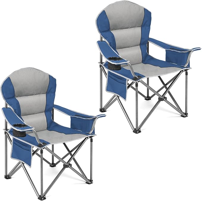 - 【Spacious and Comfy Seat】Sink into relaxation with OLIXIS camping chairs featuring plush padded seating for ultimate comfort.The ergonomic design with soft armrests cradles your body perfectly, making it ideal as a beach chair for sunbathing or a cozy spot around the campfire.